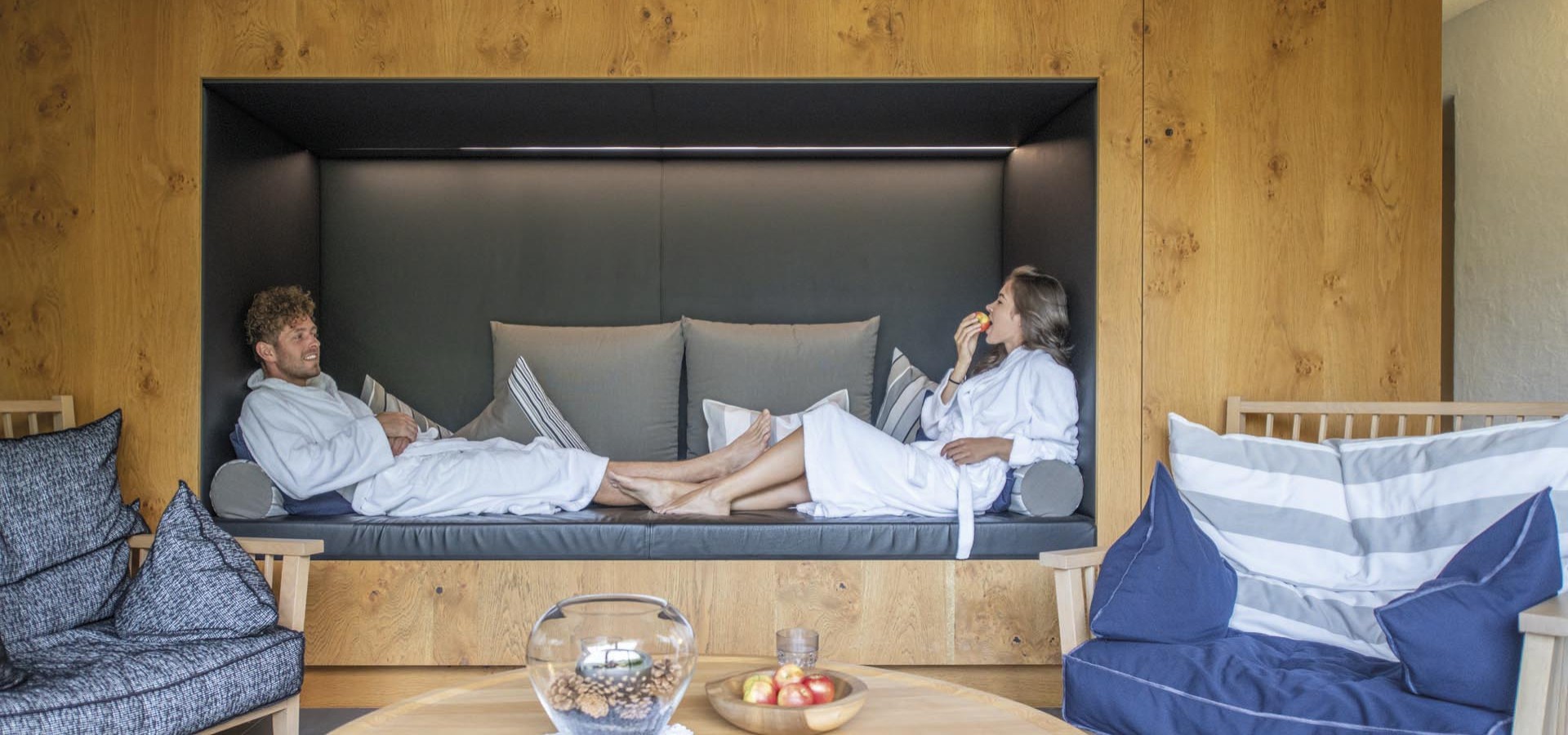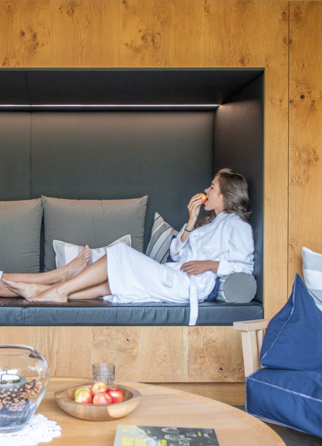 Yes, that’s my darling, and she has found out all sorts now about the Kabis, Villnöss and all of the pioneers. Reinhold Messner – incidentally related to Konrad and the Kabis family –, Adolf Munkel, Paul Preuss, Paul Grohmann and Johann Santner, all honoured guests at the Hotel Kabis – the South Tyrolean mountaineering pioneers’ hotel – whose footsteps we are going to follow in tomorrow when we head up to the breathtaking mountain pastures below the summits of the Villnöss Geisler group. But today we’re having a real lazy day. In a moment we’re going to the super-cool grotto pool with sauna and steam bath – and then out onto the sunbathing lawn beneath the apple and pear trees, where I will be able to let my mind roam free, untroubled by thoughts of the outside world.
