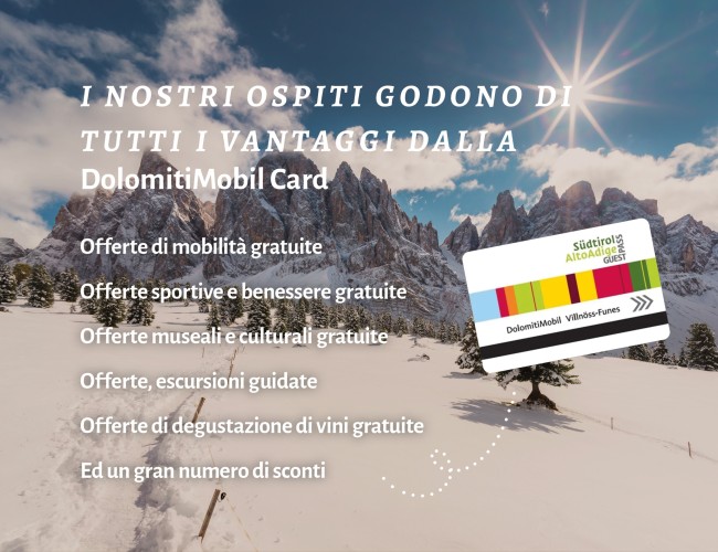 Volete godervi la vostra vacanza sugli sci nelle Dolomiti lontano dalle piste affollate e frenetiche? Allora venite a sciare a Funes! Il nostro piccolo ed ammirevole comprensorio sciistica 'Filler' garantisce divertimento assoluto sulle piste per tutte le età. Quindi, la val di Funes è considerata una meta segreta per gli appassionati di sci e snowboard.